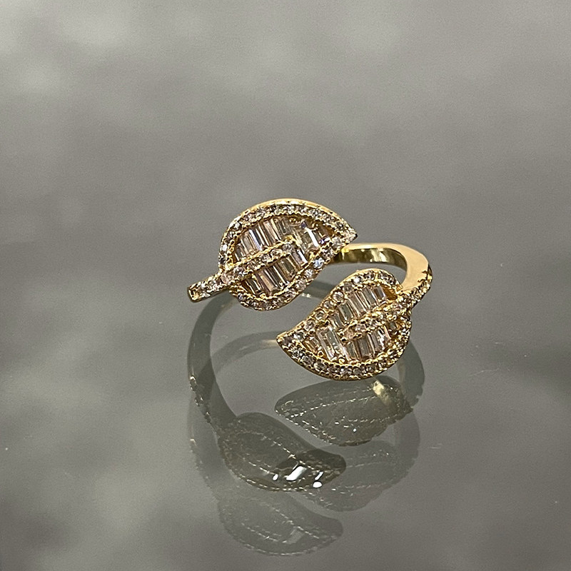 INNOSENSE diamond-encrusted leaf open ring female ins retro forest small jewelry simple fashion exquisite ring