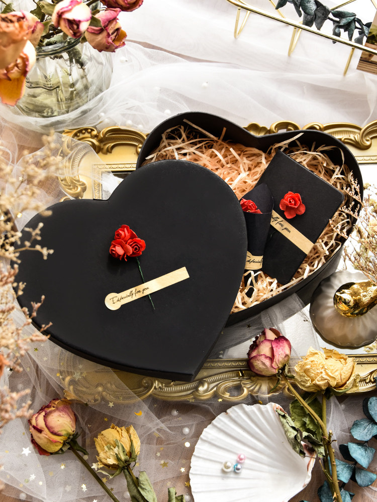 Black heart-shaped red roses Black heart-shaped sunflowers Black heart-shaped rose bouquets Black heart-shaped pink bouquets Black heart-shaped wishing fruit