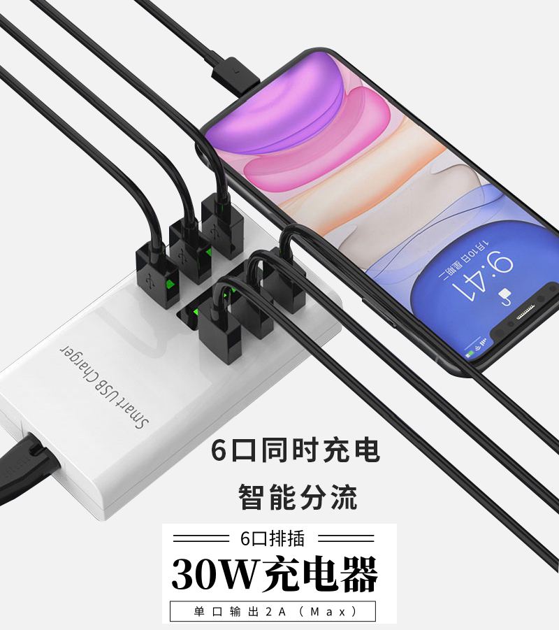 Multi-port charger usb10 port socket mobile phone studio charging pile Android Apple high-power fast charging station