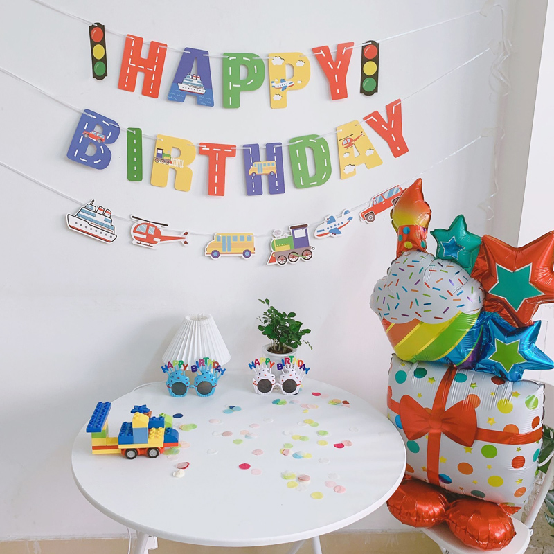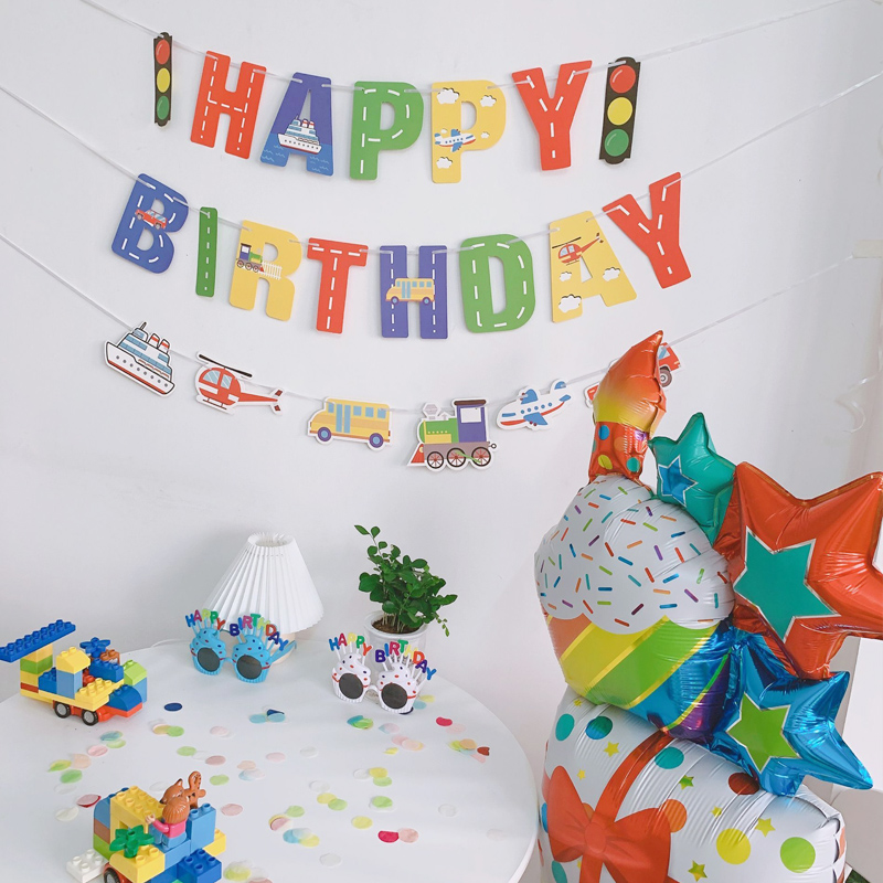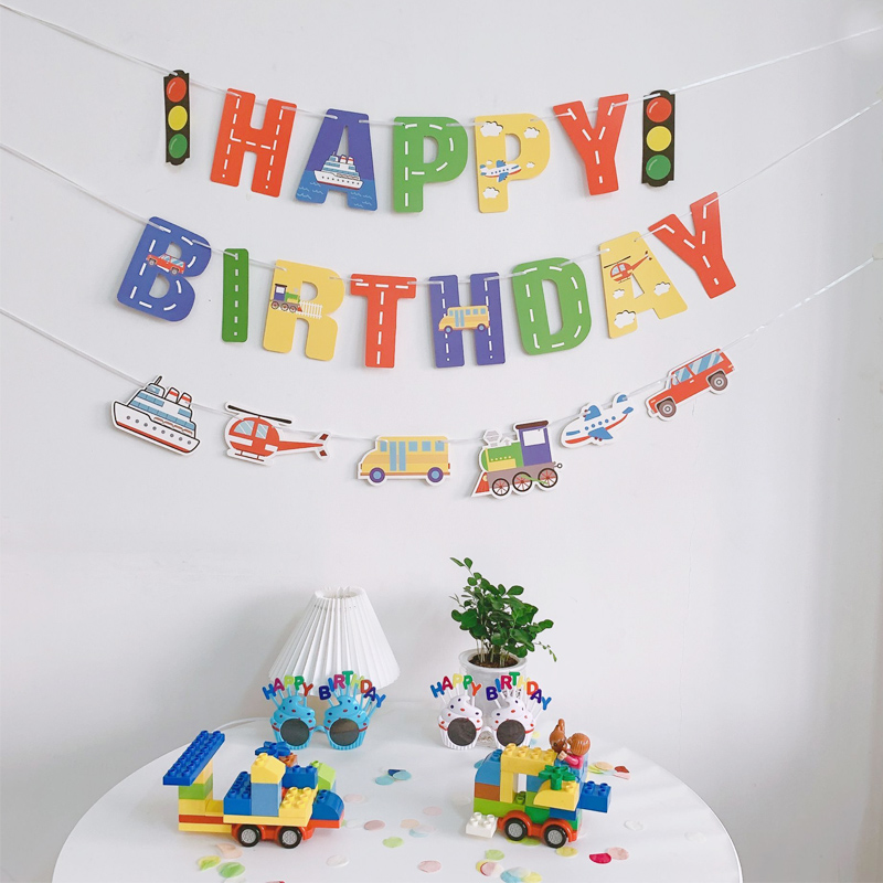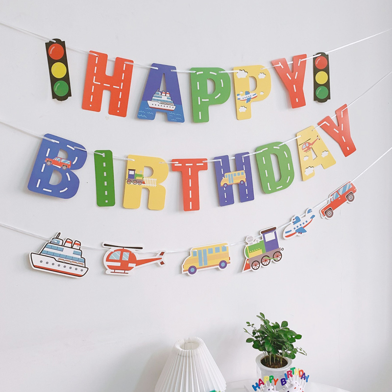 Boy's birthday Birthday Decoration Laqi Banner Engineering Car Plane Cartoon Pattern Birthday Background Wall Child Laflower-Taobao