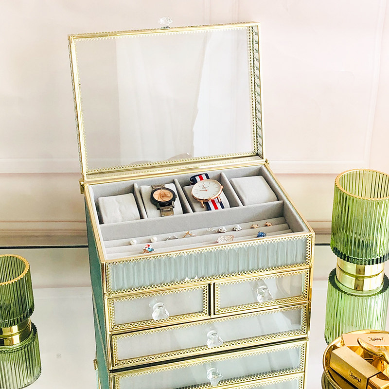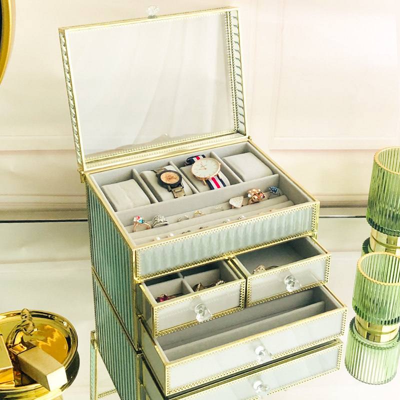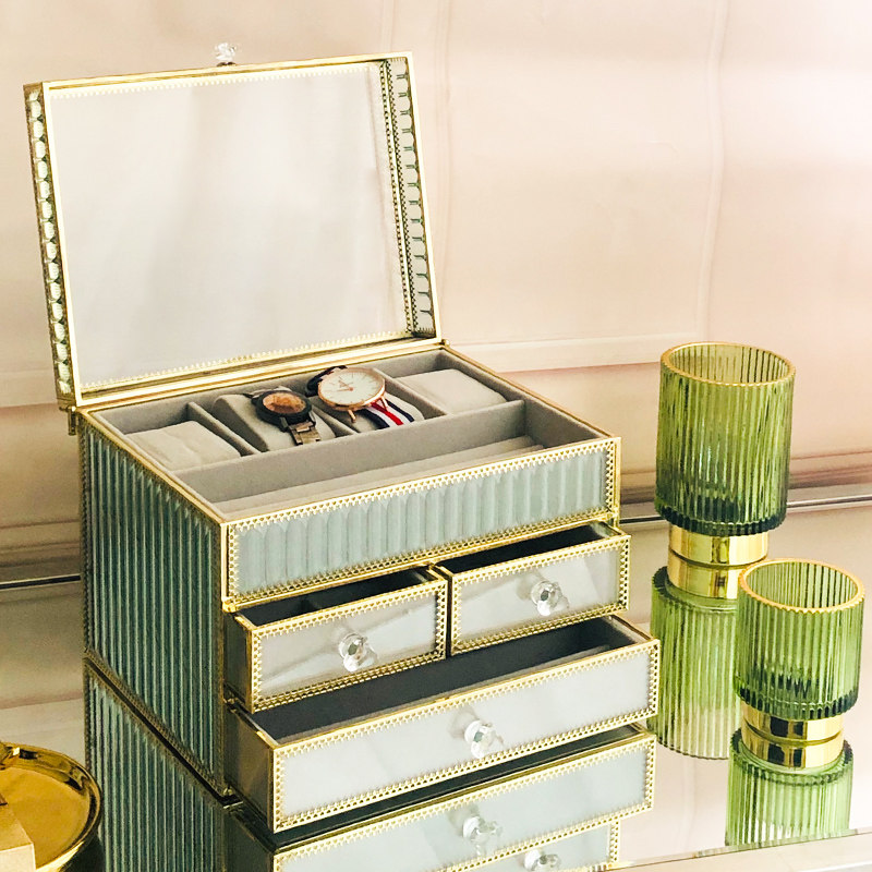 Nordic striped transparent glazed makeup Watches Ring necklace Jewellery Jewelry Box Earrings Tabletop Finishing