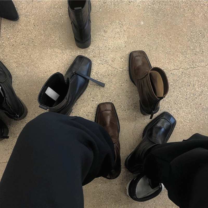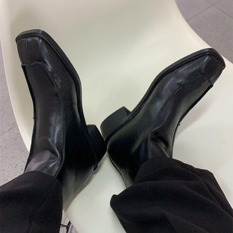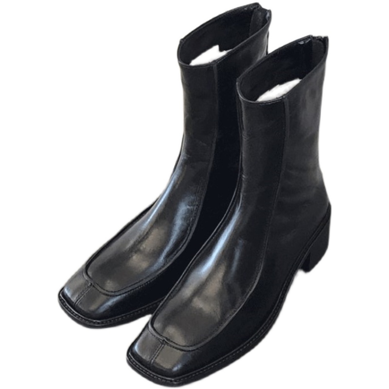 Square head retro rear zipper coarse heel short boots woman 2023 Winter new small crowddesign Naked Boots Fashion Elastic Boots-Taobao
