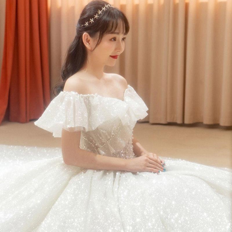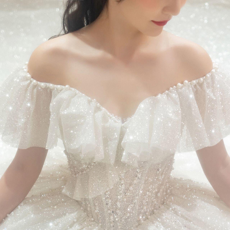 Bride main wedding dress 2021 new small man one-shoulder high-grade texture large size drag tail court style out of the yarn light