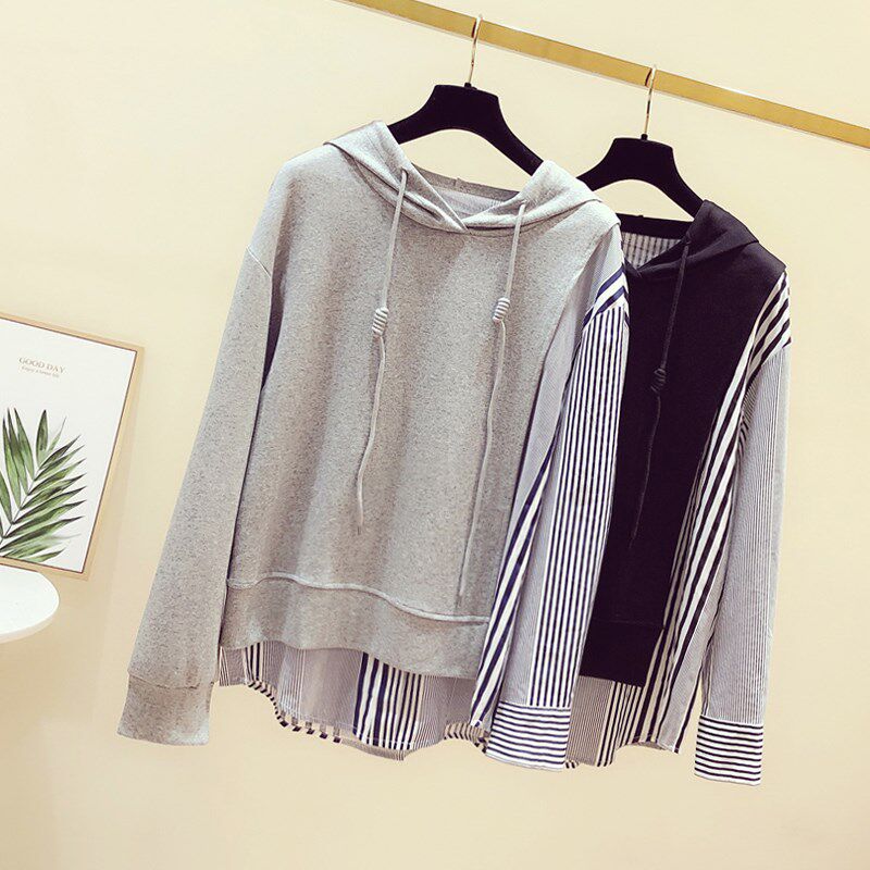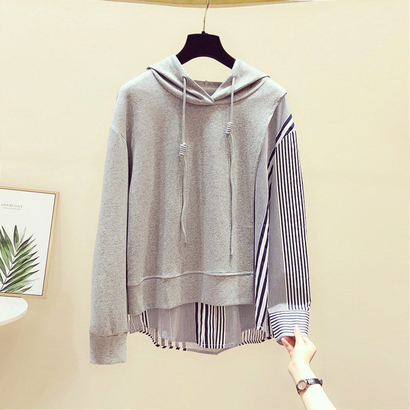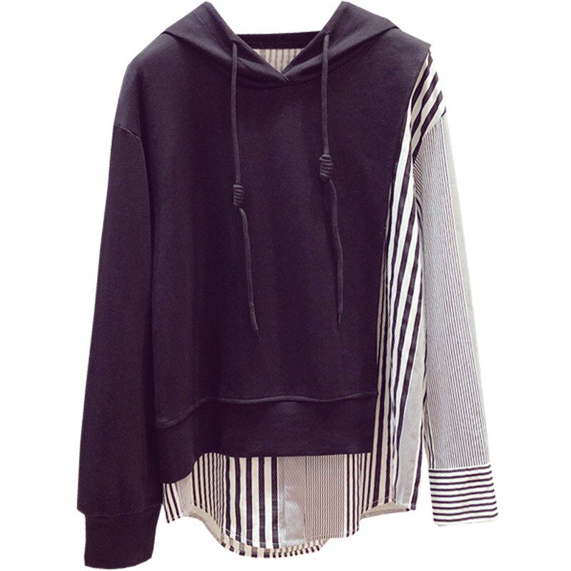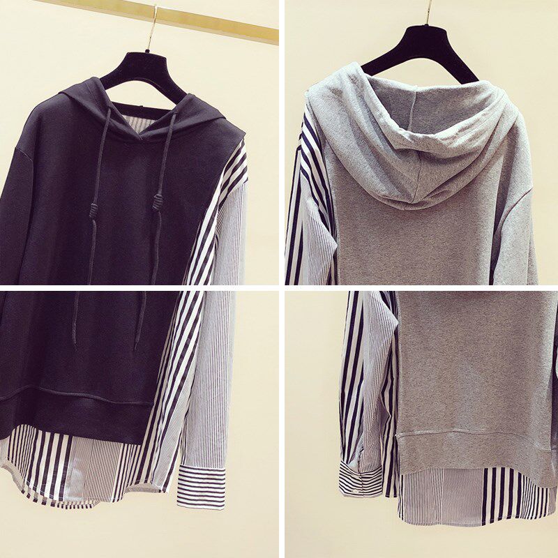 Hong Kong striped stitching fake two-piece hooded sweatshirt women's 2022 spring new Korean version design loose hoodie top