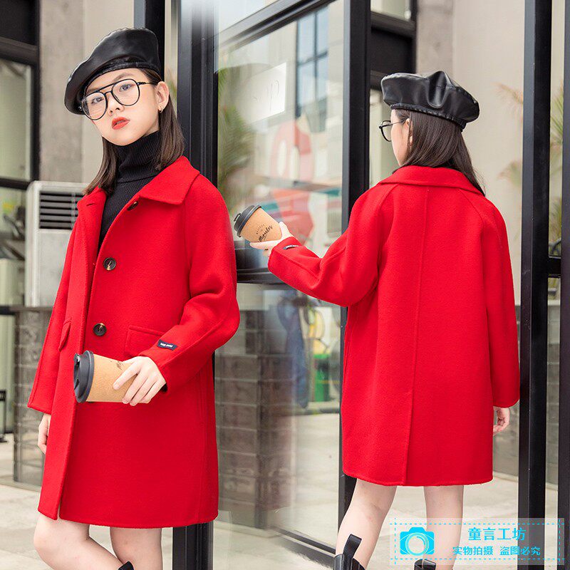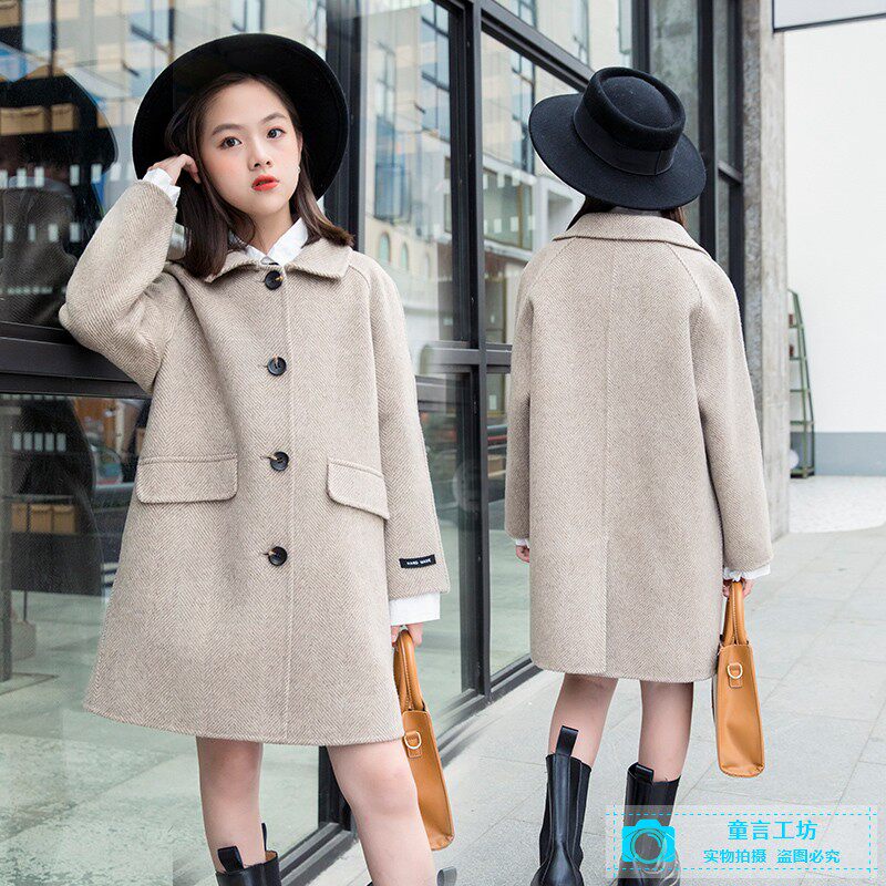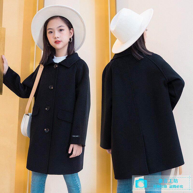 Autumn and winter new girls' double-sided cashmere woolen coat middle-aged boy's foreign style woolen coat children's woolen woolen top
