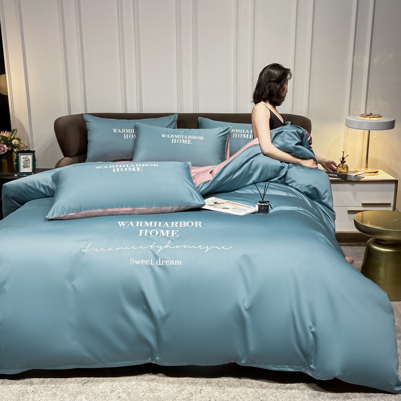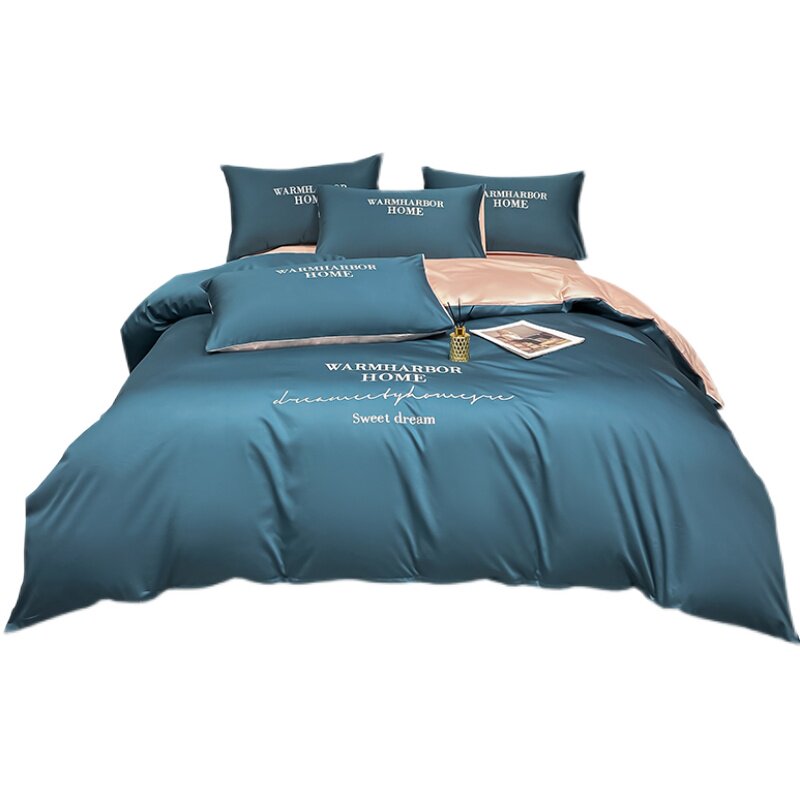 Light luxury bed four-piece set of cotton pure cotton embroidery high-end Nordic simple three-piece bed cover student dormitory