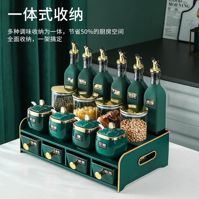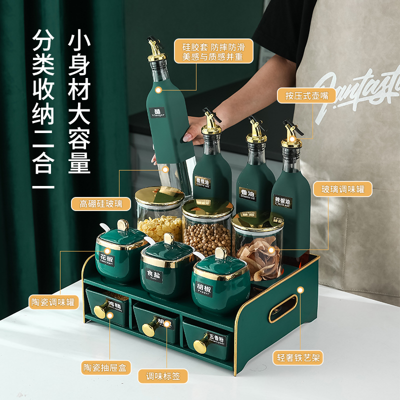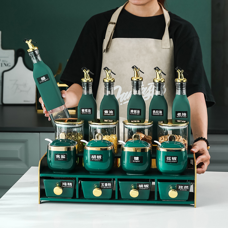 Seasoning Box Home Kitchen High-end Seasoning Combined Suit Light Extravagant Seasoned Jar Sealed Mesh Red Sauce Bottle full set