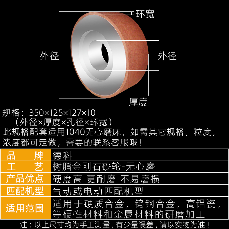 M1040 Centerless Grinding Machine Grinding Wheel Resin Diamond Outer Round Grinding Tungsten Steel Flat Type Alloy Sand Wheel 350 * 125 * 127
