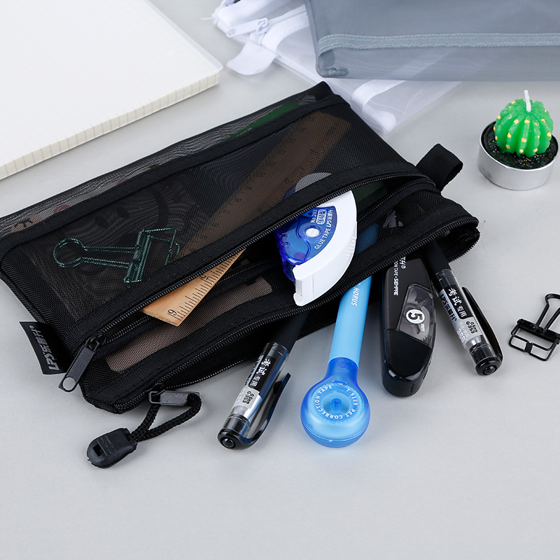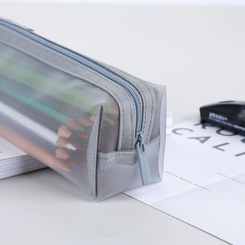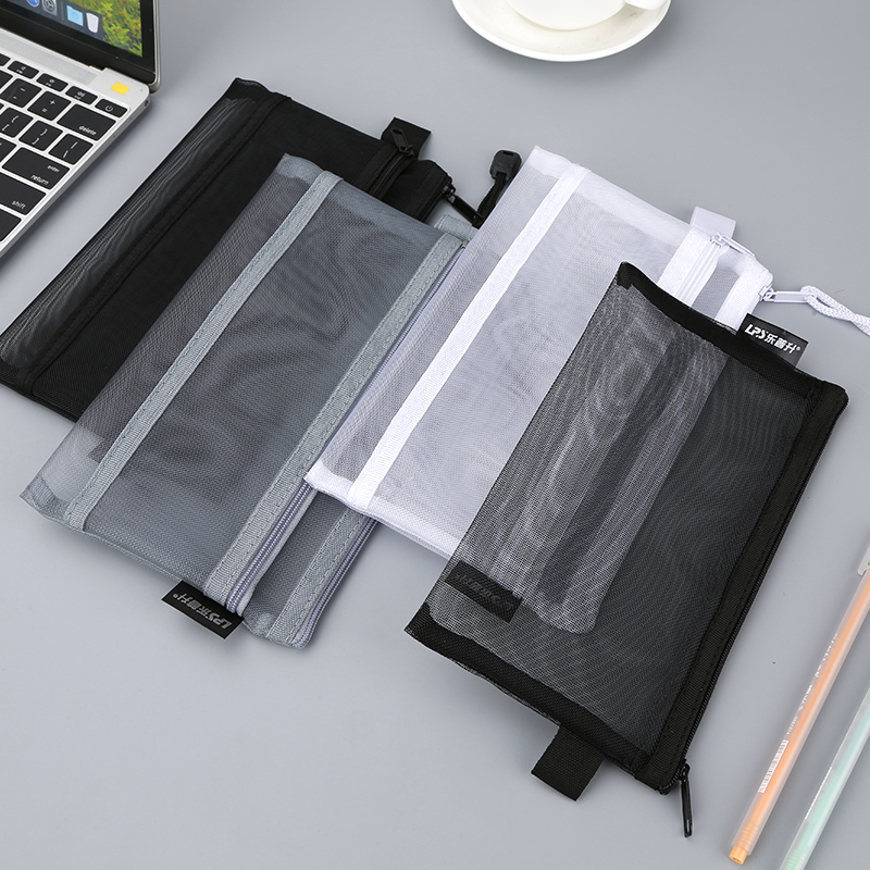 Lep-up Transparent Mesh Yarn Pen Bag Large Capacity Student With Exam Special Stationery Bag Korea Brief Freshener Cute Pen Bag Pencil Case for men and women Junior high school students stationery grid collection bags
