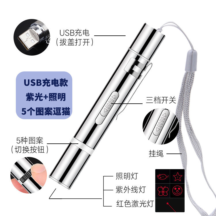 USB laser teasing cat pen flashlight pet cat toy self-healing pattern teasing cat stick teasing dog teasing fish walking cat