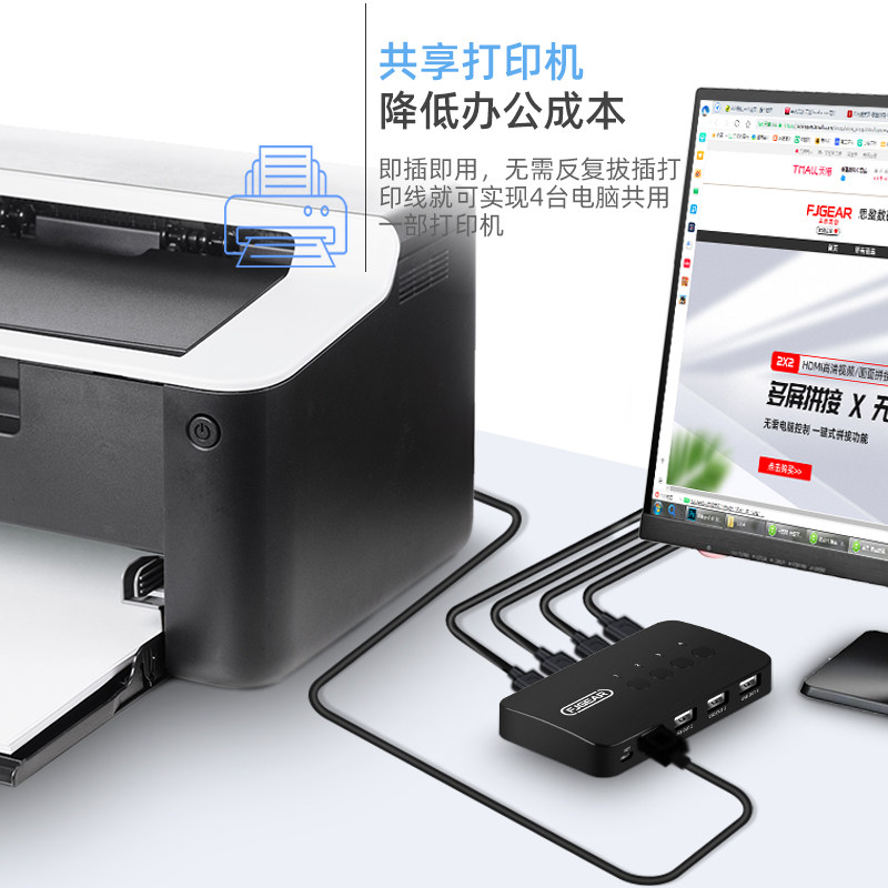 Fengjie usb printer sharer 4 computers share mouse keyboard U disk printer sharer usb switcher four-in-four-out splitter