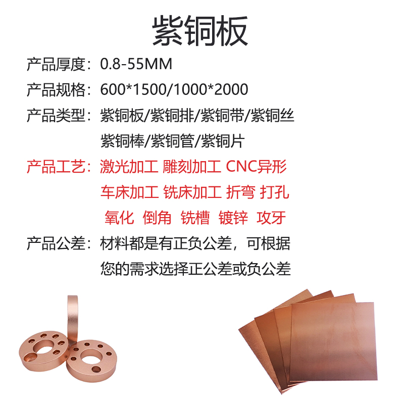 T2 copper plate laser cutting copper sheet zero cutting copper row copper rod punching and bending diy processing customization