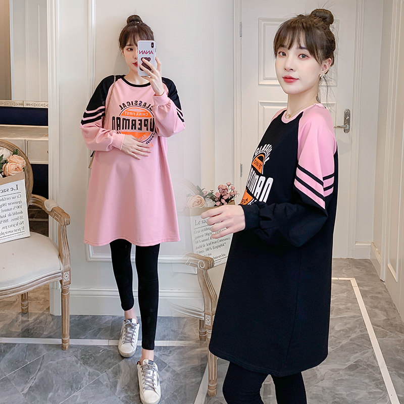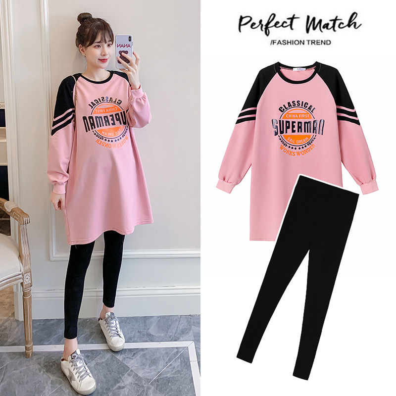Small Maternity Dress Autumn Suit 2021 New Fashion Net Red Top Dress T-Shirt Two-piece Set