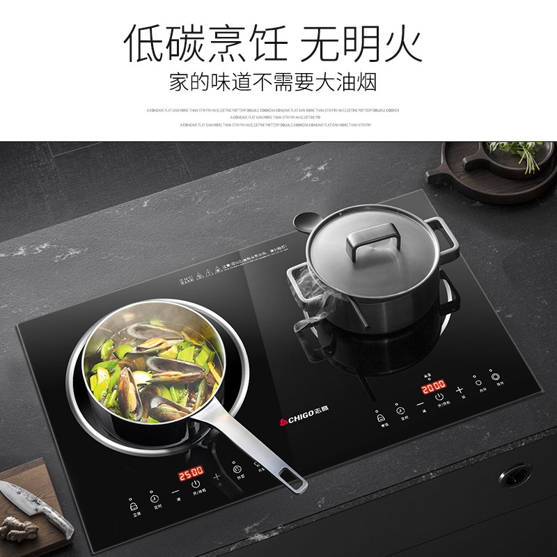 Zhigao induction cooker double Port gas stove household embedded double head concave black crystal furnace embedded electric stove high power induction cooker