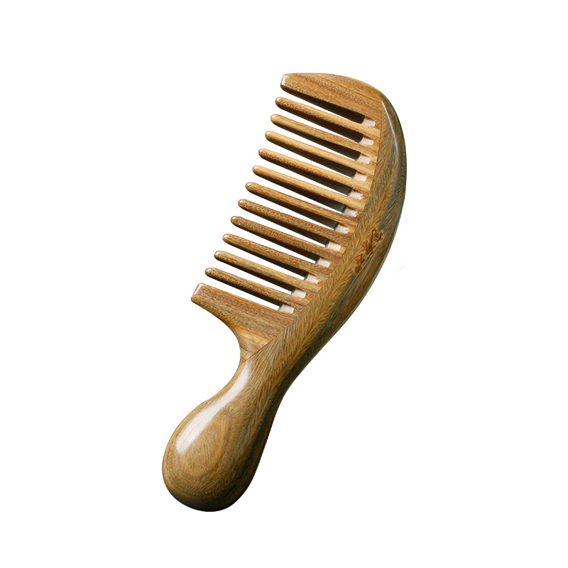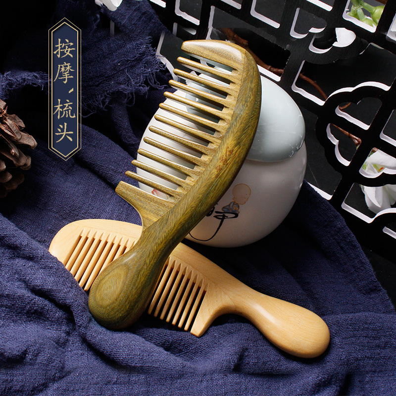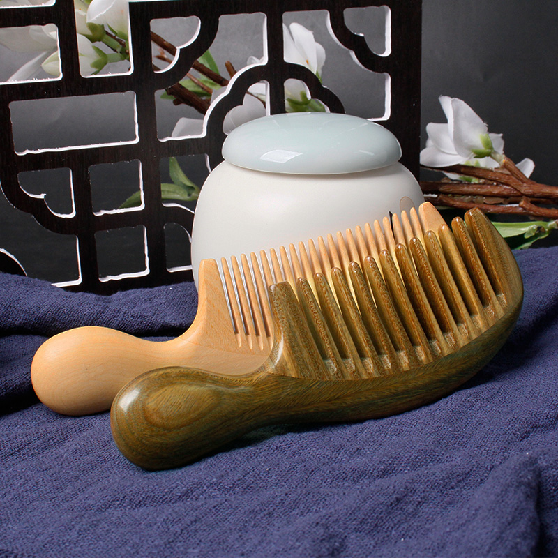 Green sandalwood small round handle wide teeth yellow poplar wood small round handle fine teeth