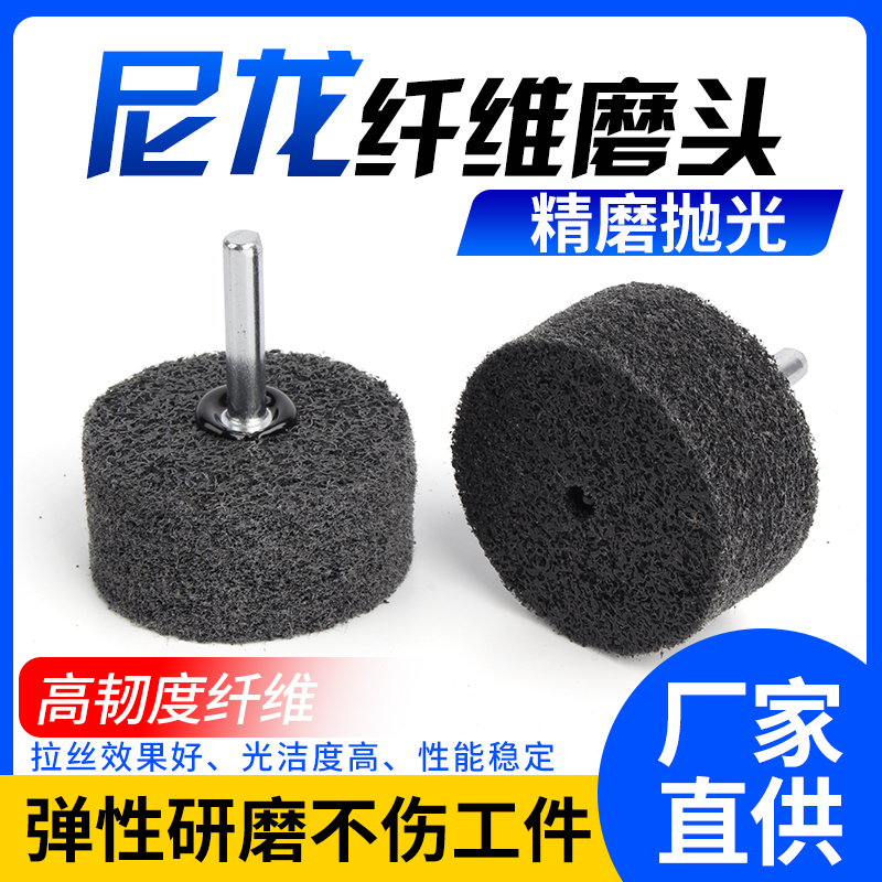 Cylindrical fibre grinding head nylon grinding head stainless steel polished wheel unwoven fibre wheel electric grinding head shank diameter 6MM