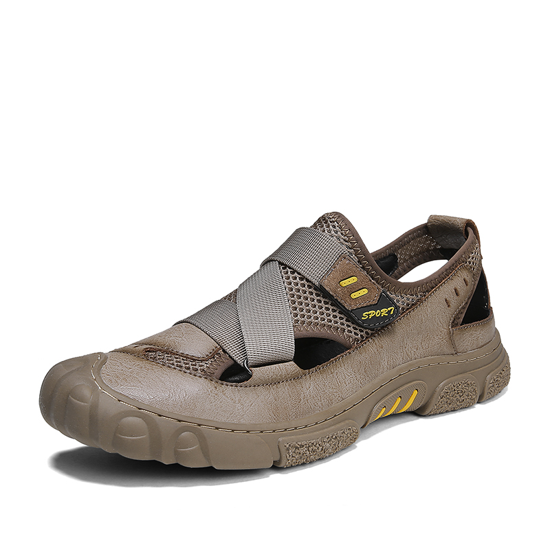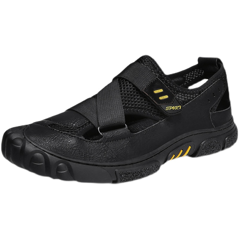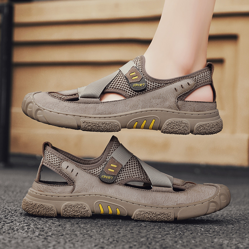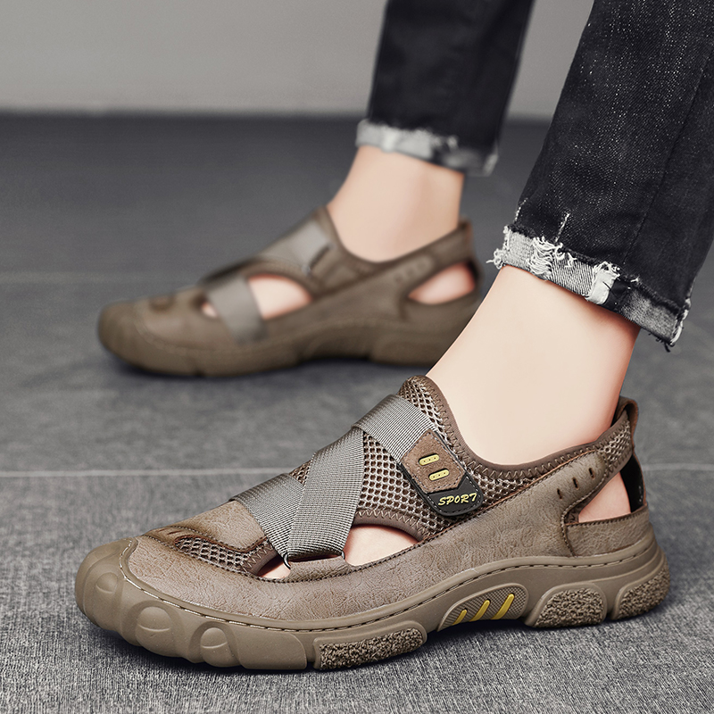Summer hollowed-out sandals men's business casual leather shoes men genuine leather soft-bottom sandals Dual-purpose penetrate gas dongle dongle shoes
