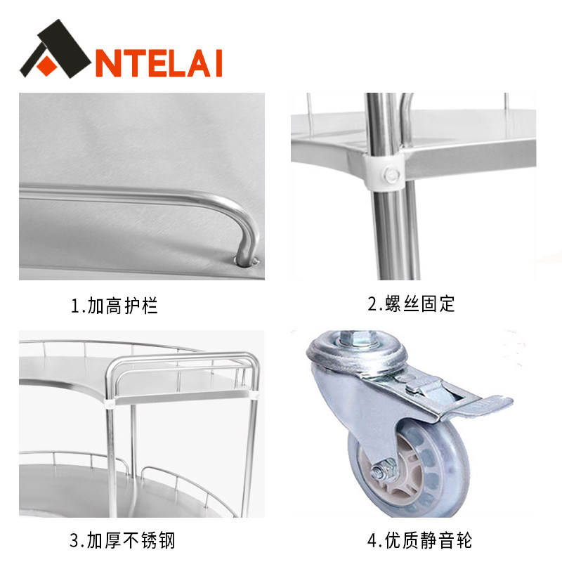 Stainless steel fan-shaped medical instrument trolley hospital disposal table medical arc trolley dental operating room trolley