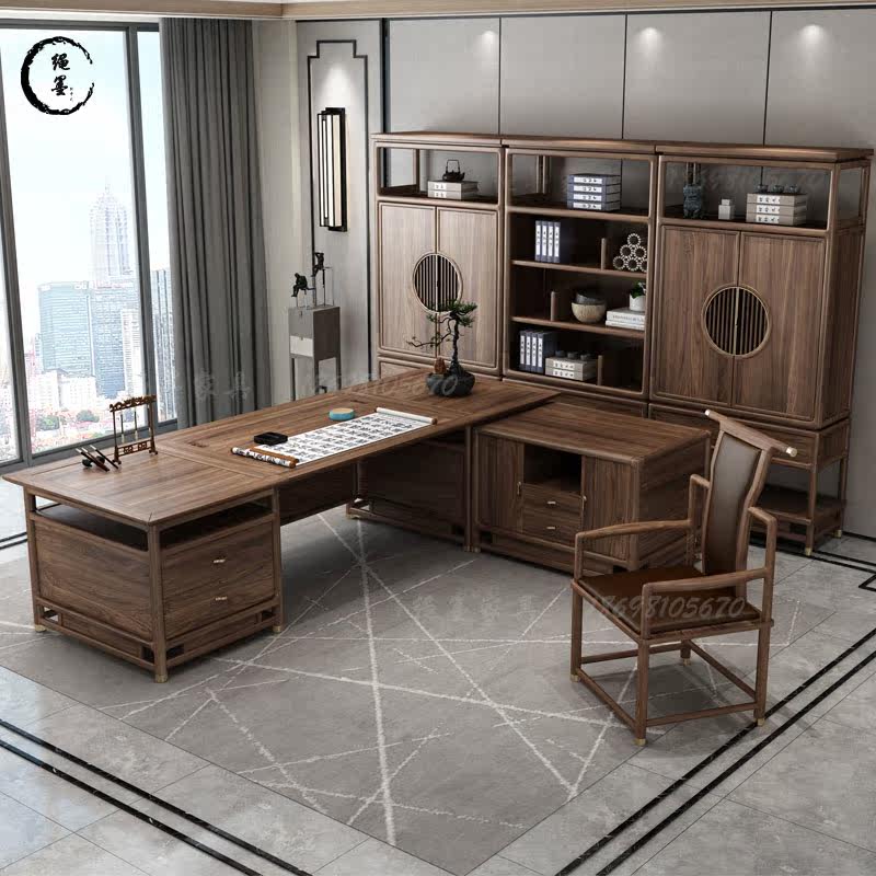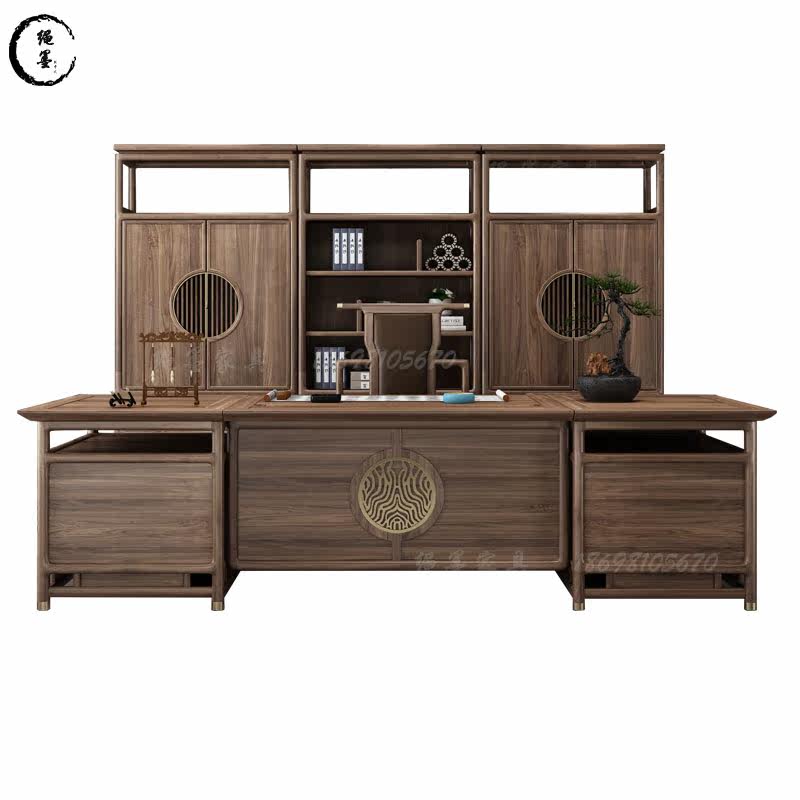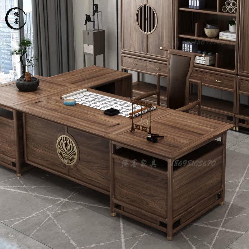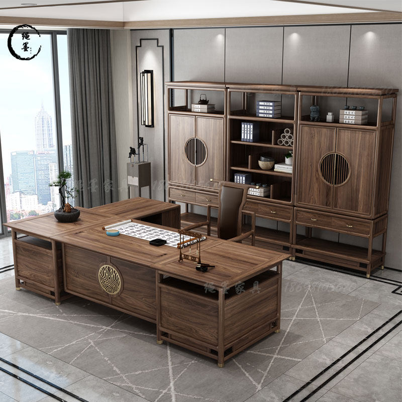 Solid wood boss president table new Chinese style office desk and chair combination Wujin wood executive desk high-end office furniture customization