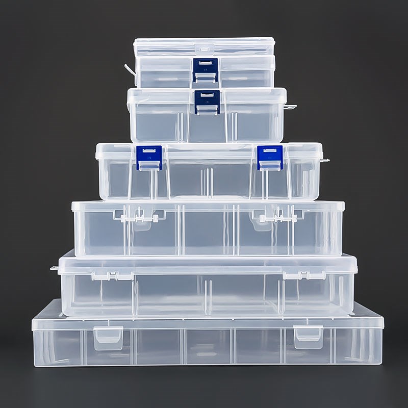 Transparent plastic box rectangular collection box gadgets hardware toolbox component box with lid empty box