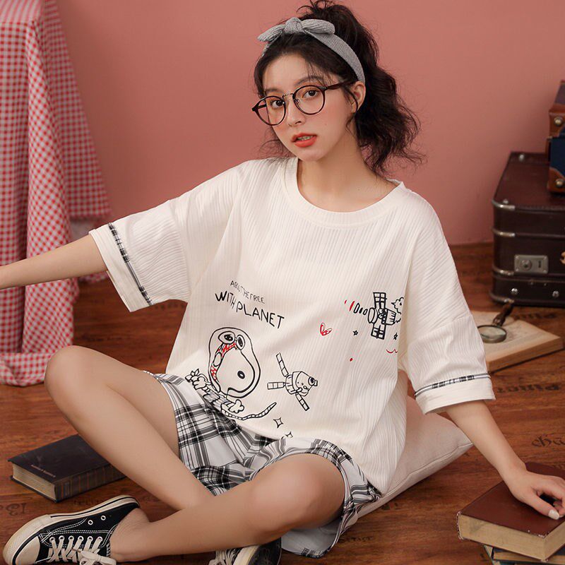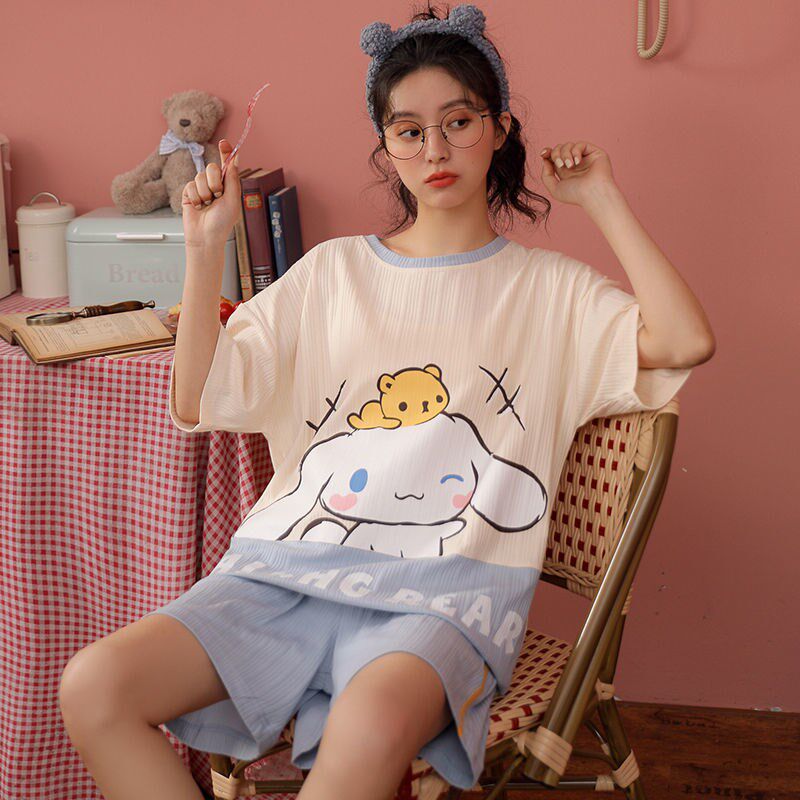 Sleepwear Women's Summer Suit Short Sleeve Shorts Casual Cute Cartoon Thin cotton New extras Home Home Suits Suit