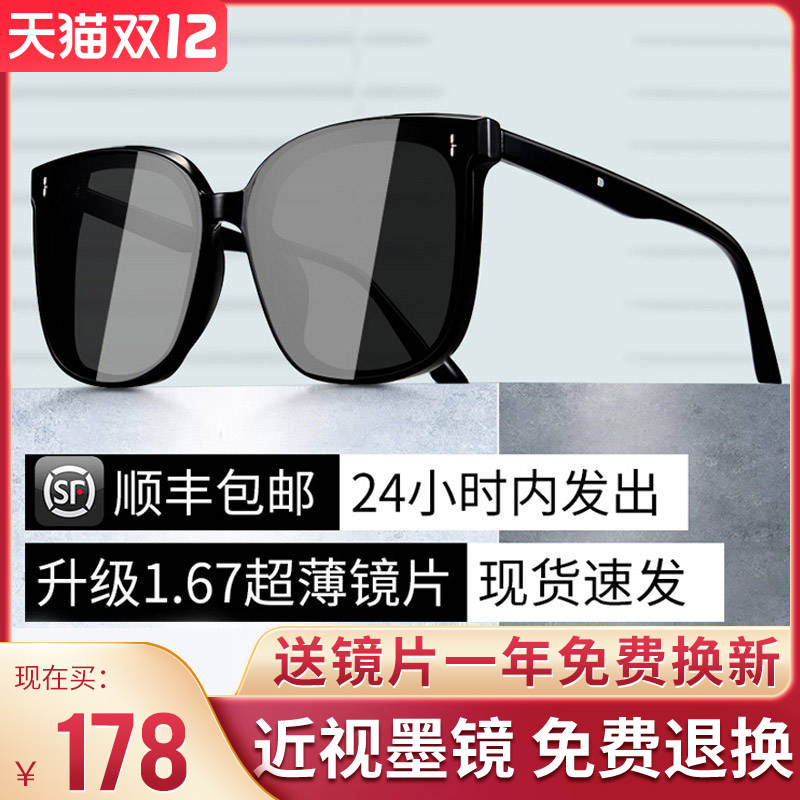 Short-sighted sunglasses female summer sunscreen photo tide anti-UVcgGM sunglasses big face high-level sense can be equipped with degrees