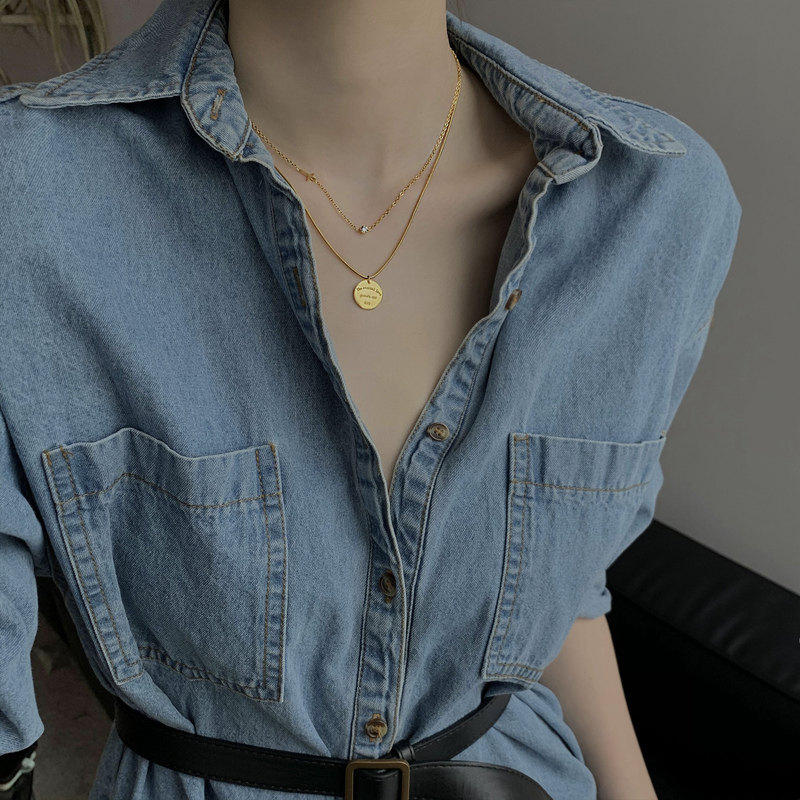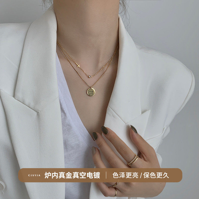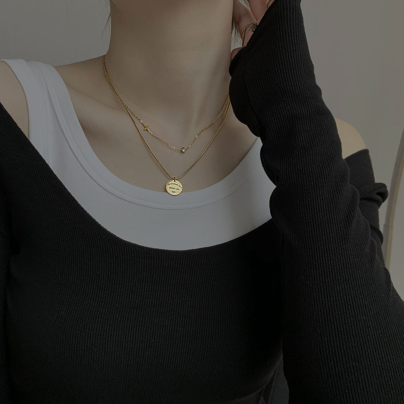 Korean double-layer round necklace female 2022 new high-end light luxury niche design hip-hop small ck collarbone chain