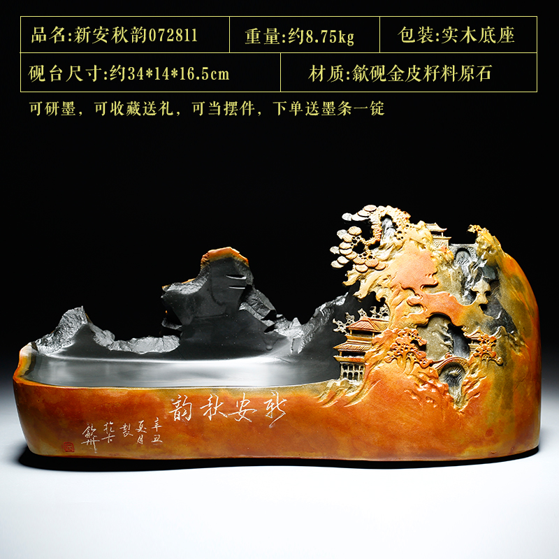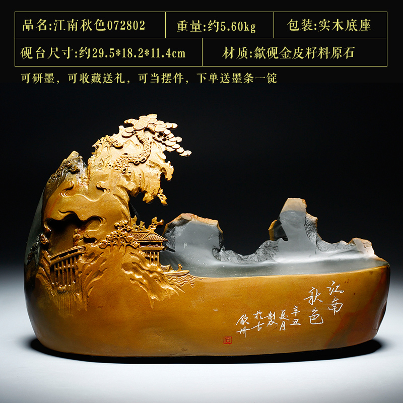 High-grade inkstone table natural original stone old pit inkstone gold skin seed material famous teacher hand-carved four treasures of the study collection gift