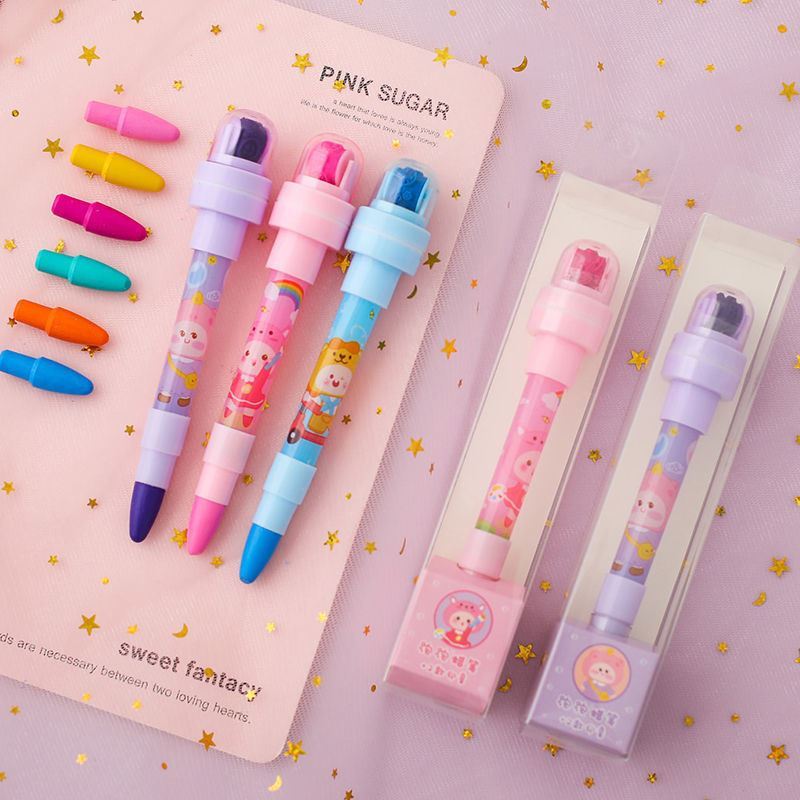Pink Purple Blue Color Treasure Blue Watermelon Red Light Purple Lotus Root Color Peacock Blue Wax Pen Tecole Pen-pink boxed-blue boxed-purple crayons-pink crayons-blue crayons-purple pink piglets