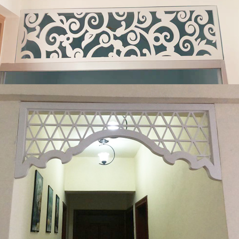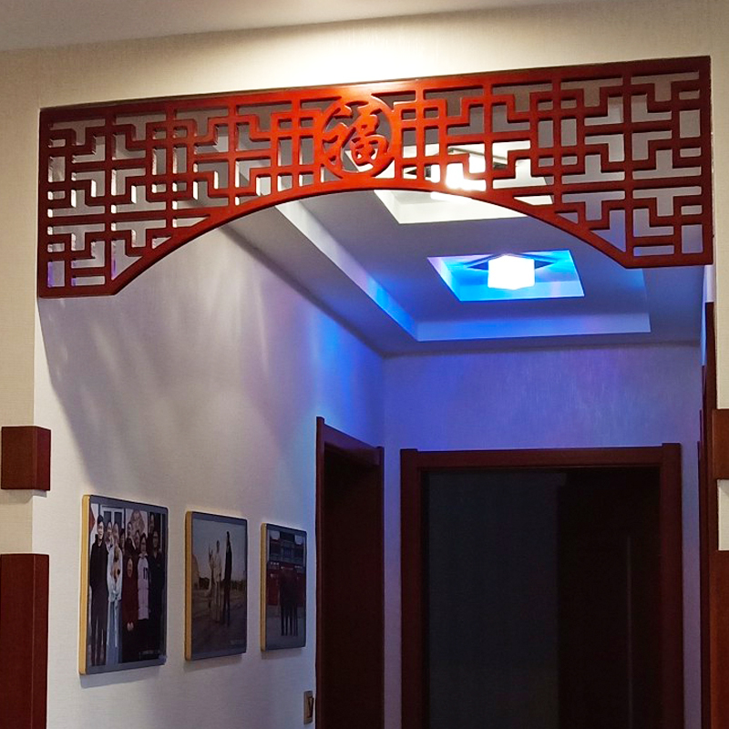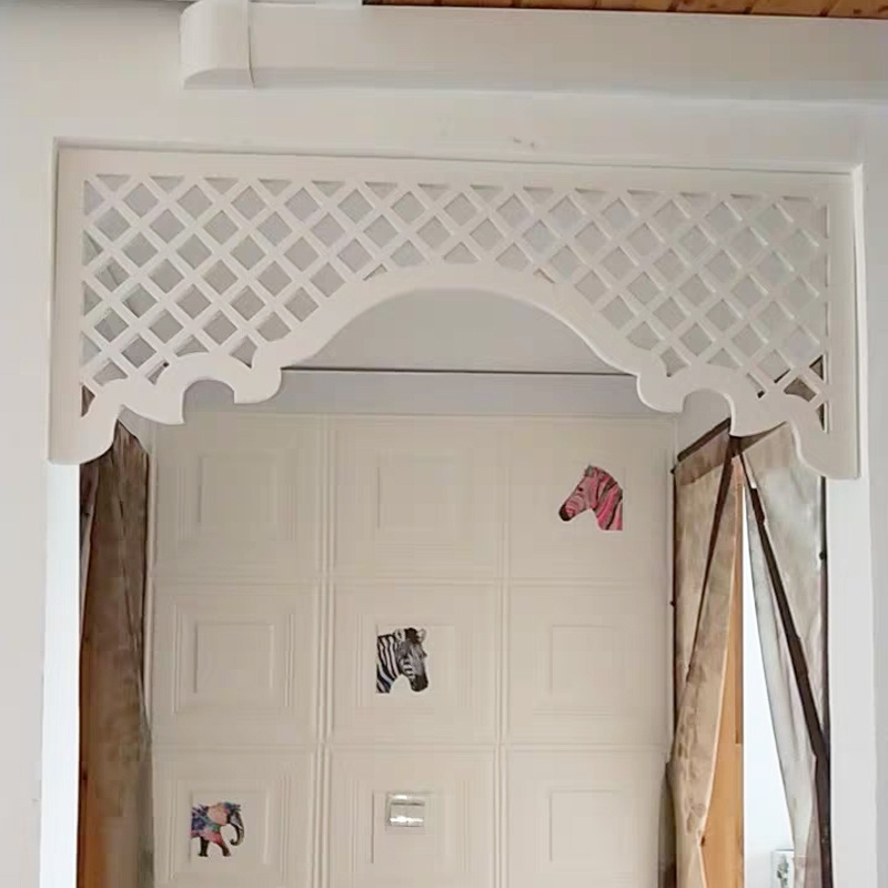Decorative European-style door head pvc wood-plastic board lintel hanging carved horns Chinese flower lattice background wall hollow partition
