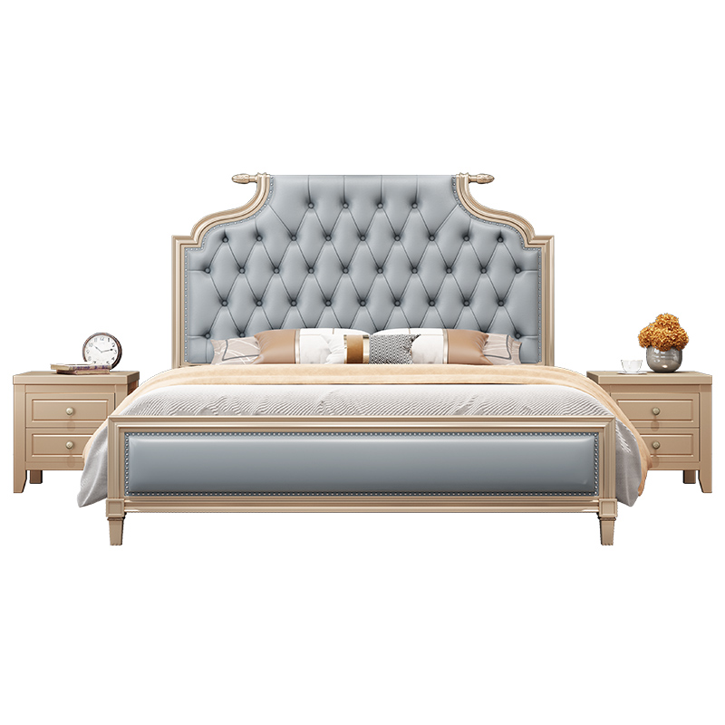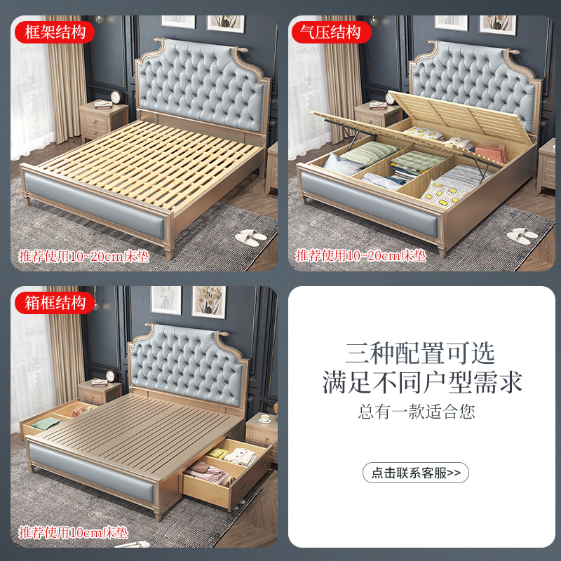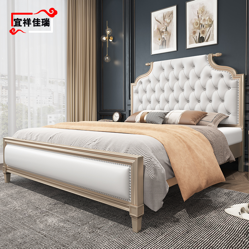 Light extravagant European and American style solid wood bed 1 8 m modern minimalist white single double luxury master bedroom 1 5 Princess Grand wedding bed