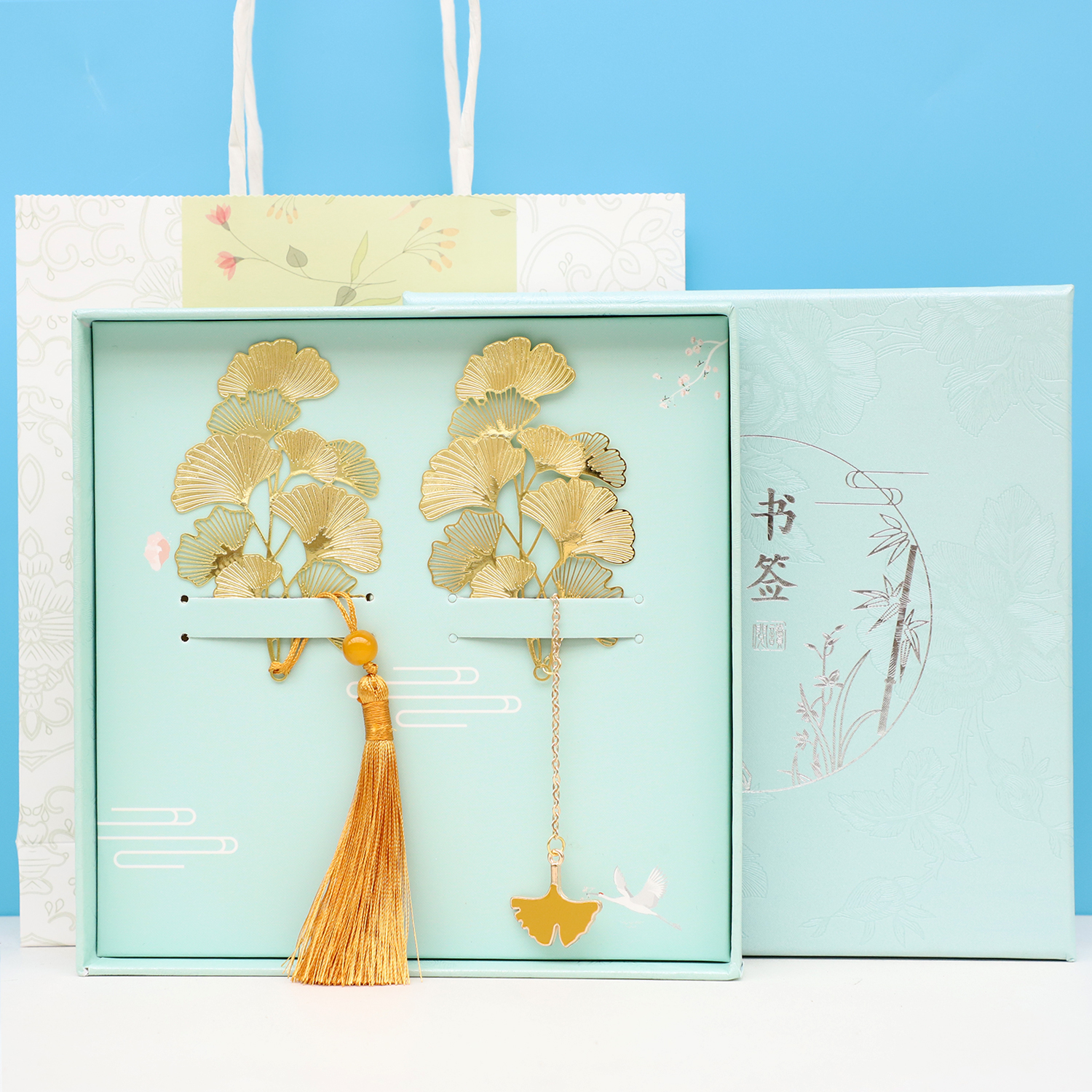 Ginkgo biloba tassel metal custom lettering art bookmark gift box signature pen students with National Day National tide gift