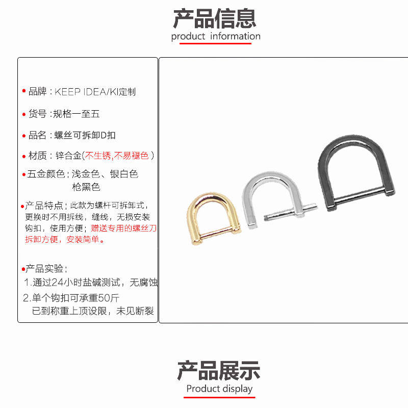Detachable D buckle# Inner diameter 1 2CM (light gold) 2 detachable D buckles #Inner diameter 1 2CM (silver white) 2 detachable D buckles #Inner diameter 1 2CM (gun black) 2 detachable D buckles#Inner