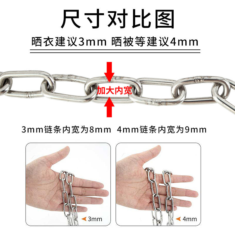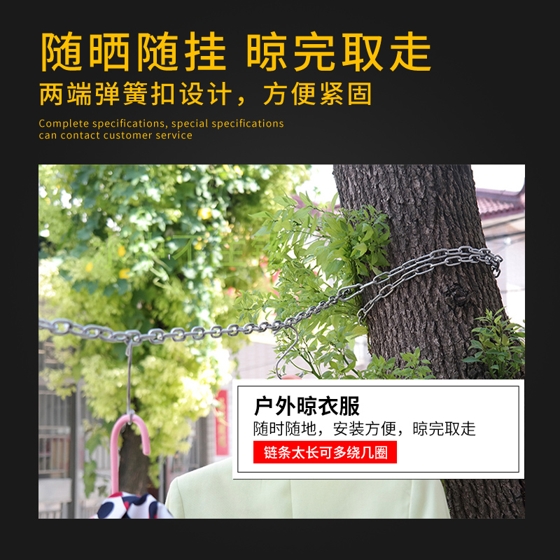Clothesline chain 304 stainless steel clothesline windproof iron chain outdoor hanging clothes artifact cool clothes chain