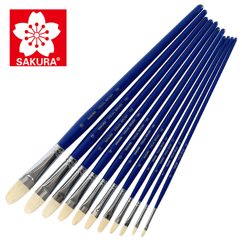 Cherry Blossom Pig Mane Oil Brush 133 Hazel Shape 131 Flat Head Acrylic Water Chalk Art Pigment Long Rod Oil Painting Brush