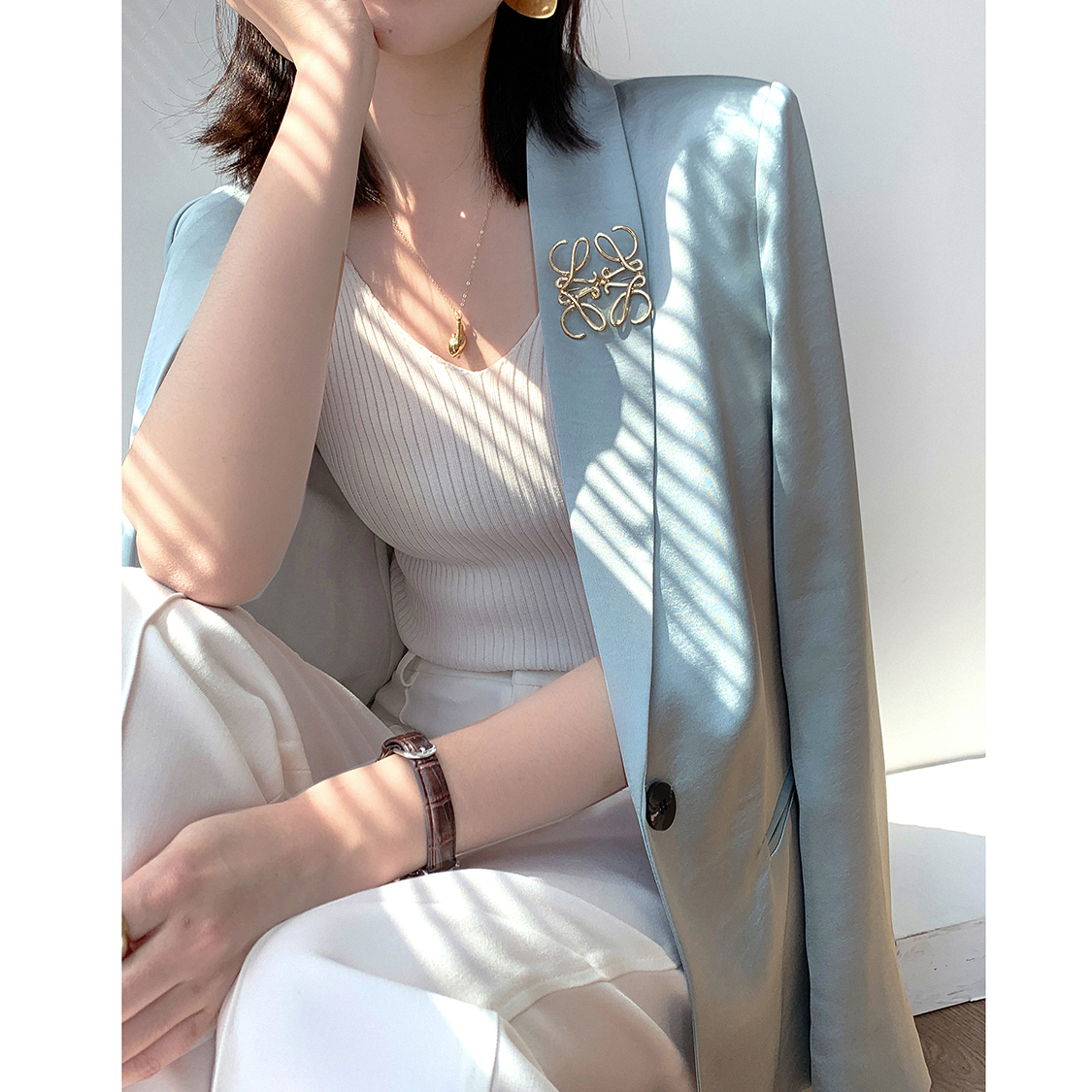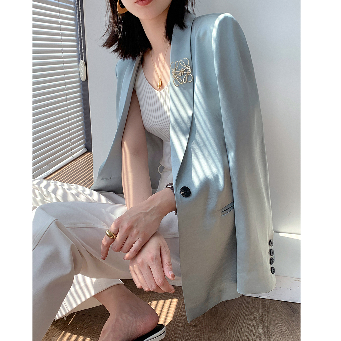 Blue suit jacket casual design sense 2021 spring and autumn new style acetate satin high-quality small suit jacket female