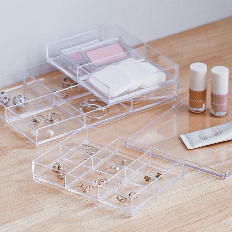 Plastic drawer box divided transparent small objects sorting box small storage box desktop storage box solid color Japan