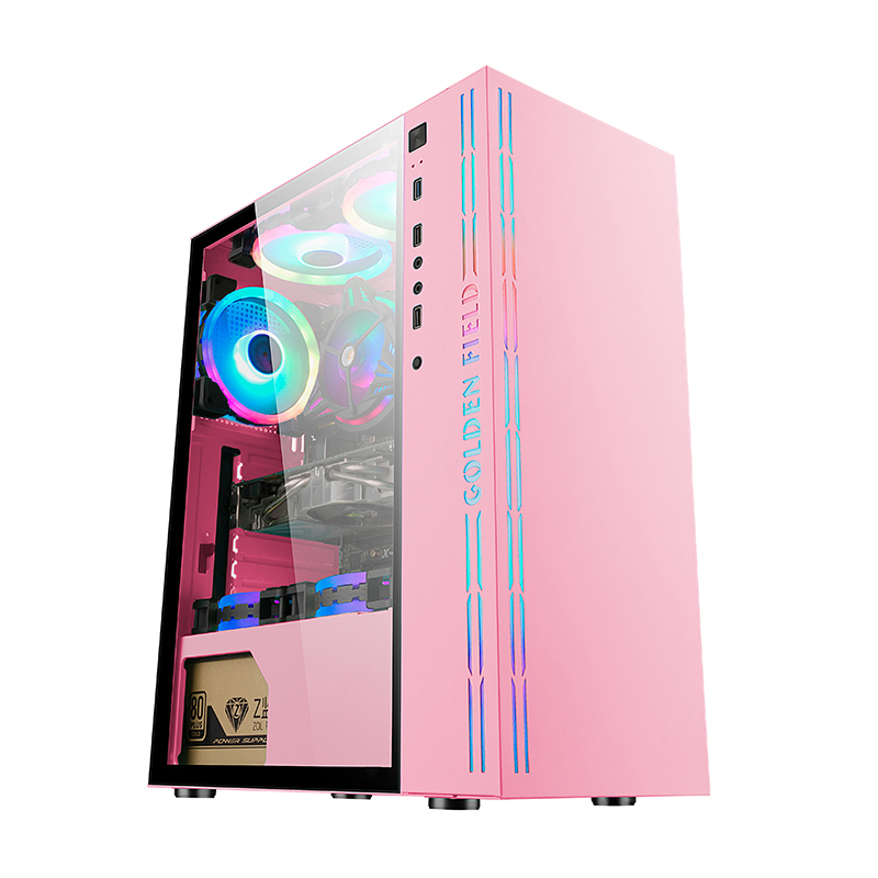 Golden River Fields 21 Foresee RGB1 Magic Claw Powder Side Through Tempered Glass Water Cooled Electric Race Pink Desktop Computer Box