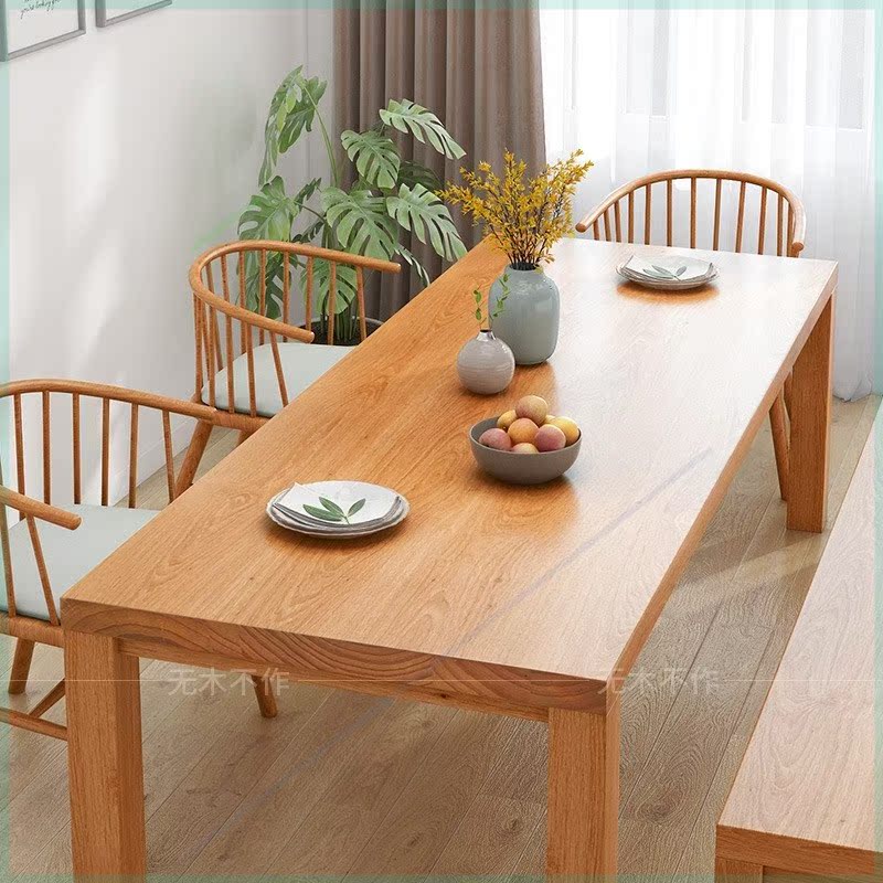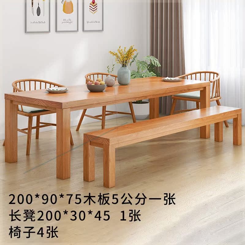 Nordic solid wood dining table and chair combination rectangular dining table home modern minimalist log dining room long table workbench