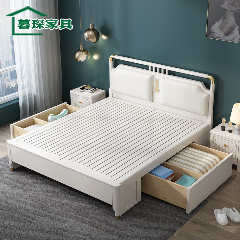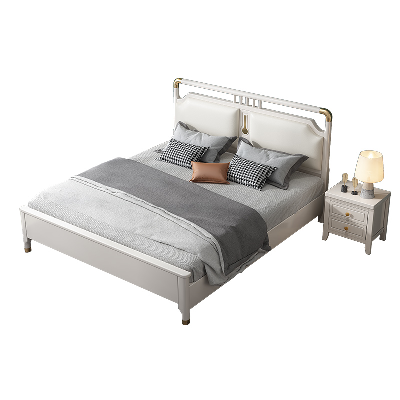 Modern minimalist light luxury all solid wood bed white single double 1 8 meters new Chinese style 1 5 master bedroom oak style furniture