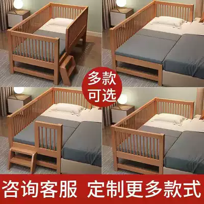 Beech children's bed splicing large bed with guardrail Boy solid wood small bed Single bed Baby baby bed side widened bed