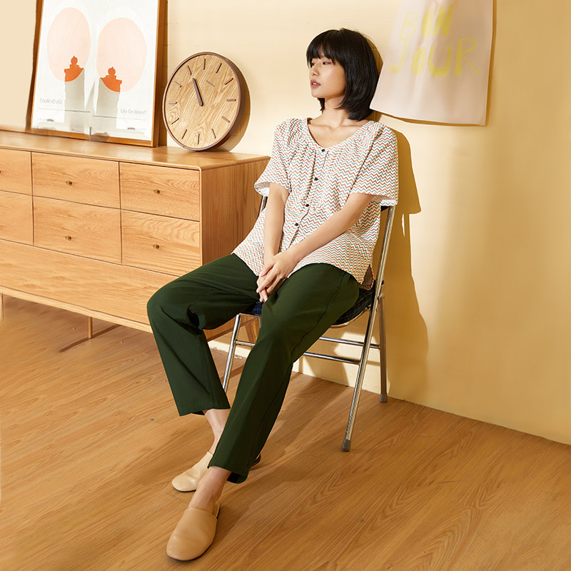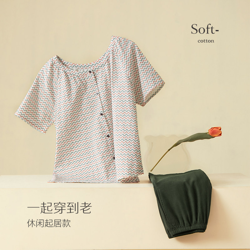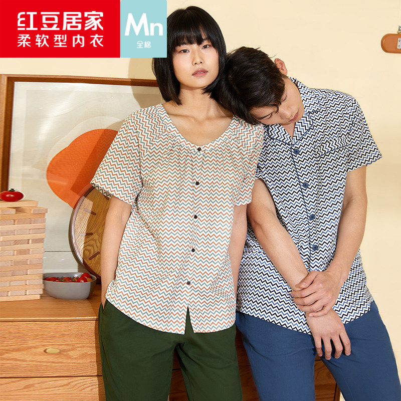 Pure cotton short sleeves Sleepwear Women Lovers 90% Pants Suit Red Bean Loose Thin spring Summer double veil Home Suits Men