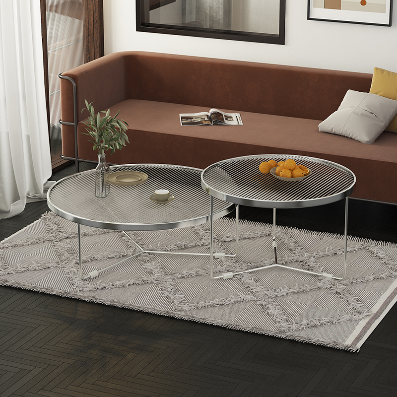 Size combined long iridescent glass tea table round primary and secondary