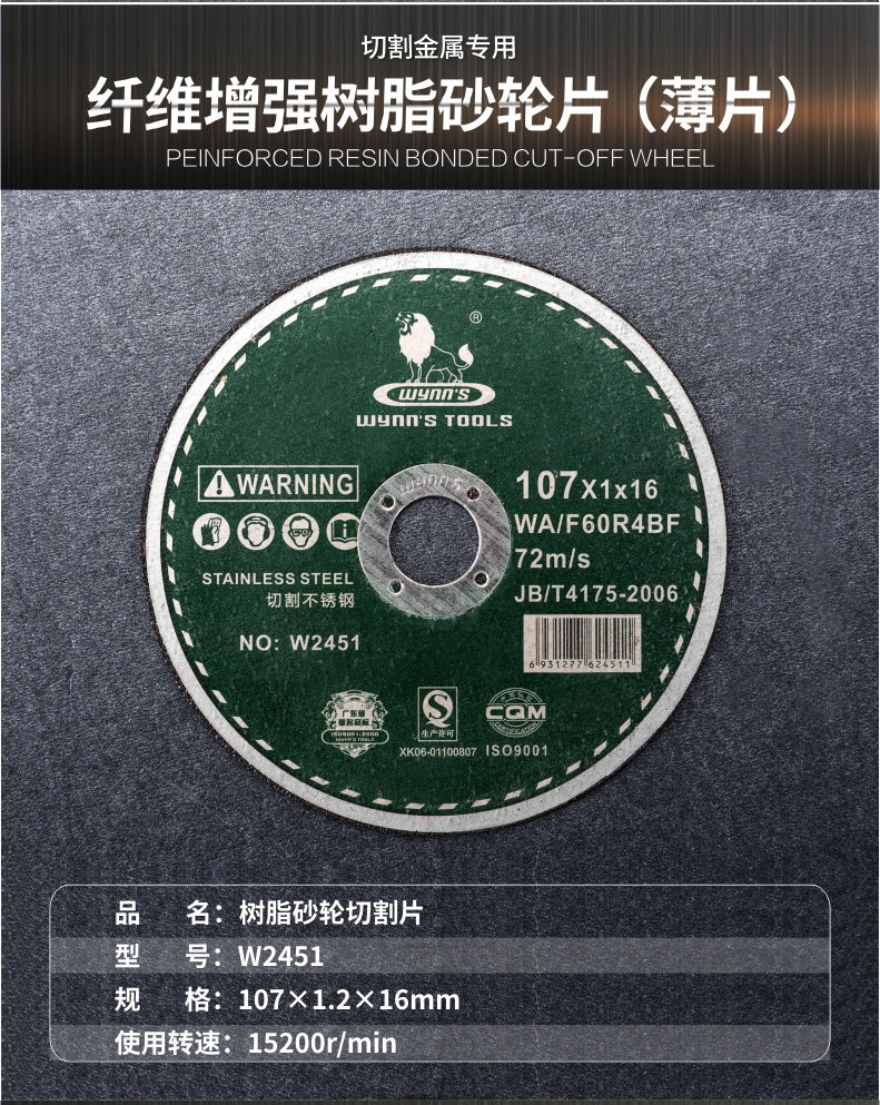 Power Lion brand Fiber reinforced resin cutting grinding wheel grinding plate 107x1 100x2 5