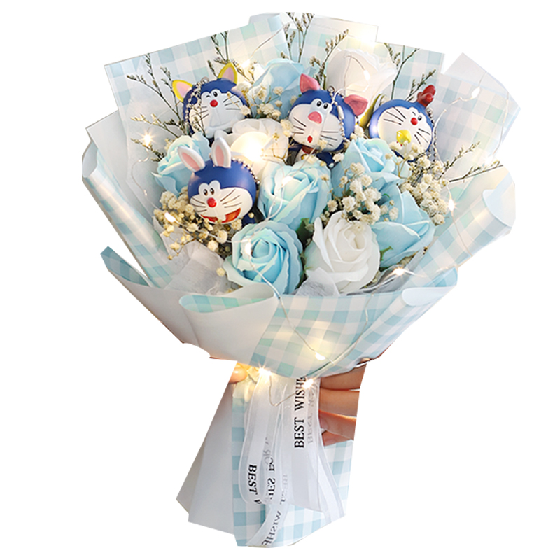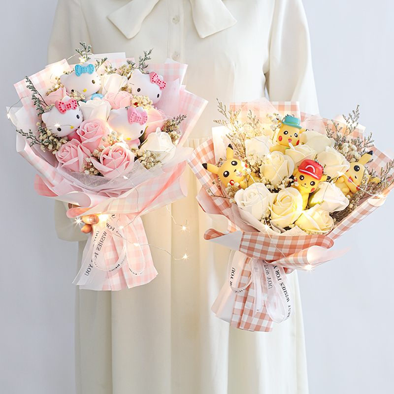 Grid Blue Blue Fat Bowl Powder Kitty·Creative Flower Bouquet Grid Orange Pikachu·Creative Flower Bouquet:Collection plus purchase light string Oh~