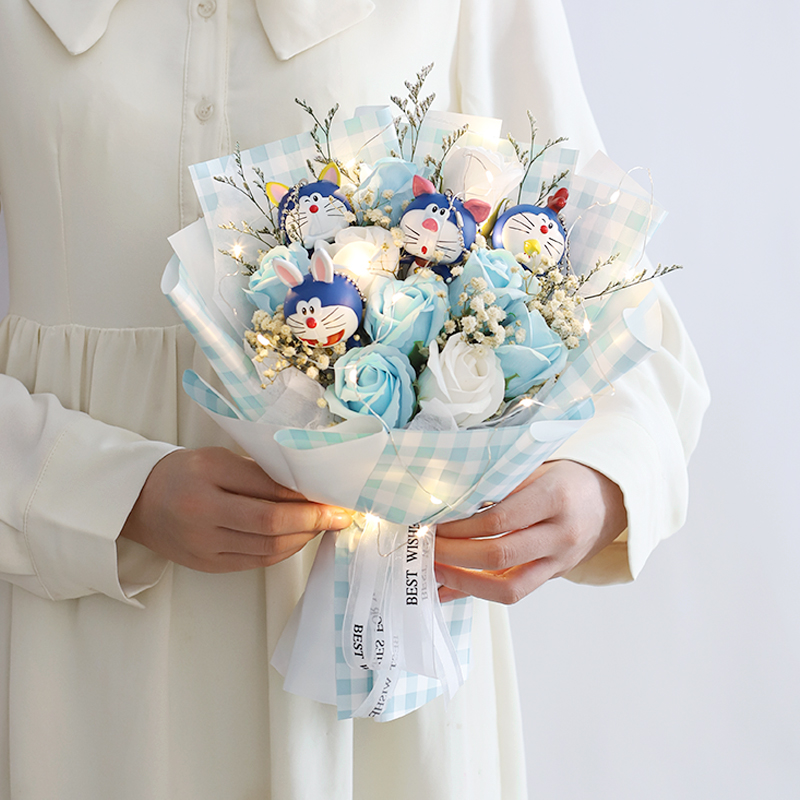 Natural flowers soap blue fat blue dry flower full star cartoon bouquet girlfriend's birthday present girlfriend Rose