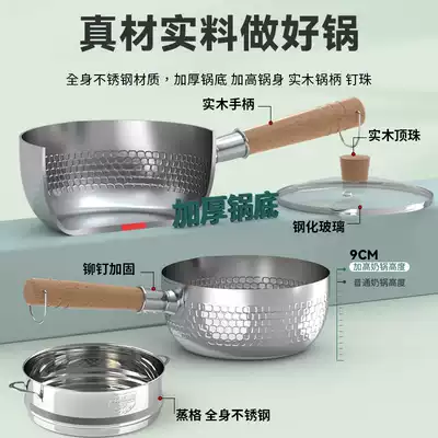 Stainless steel snow pan non-stick pot small cooking instant noodle pot household hot milk pot baby non-staple food pot gas stove
