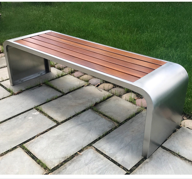 Outdoor Stainless Steel Embalming Wood Plastic Wood Park Chair Casual Stool Strip Bench Cast Aluminum Feet Cast-iron Feet Public Chair-Taobao
