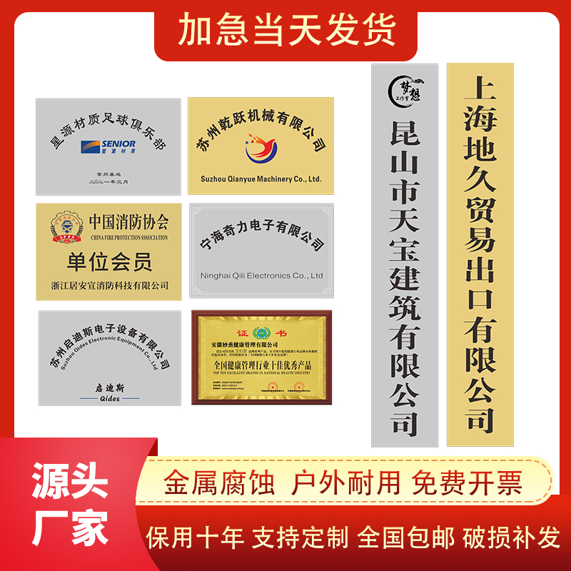 Bronze custom company plaque signboard billboard titanium brand label stainless steel door sign production