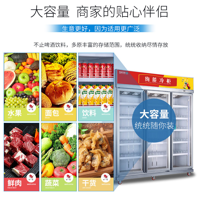 Gorgeous Drinks Cabinet Supermarket Freezers Commercial Refrigerated Preservation Air-cooled Cabinets Vertical Convenience Store Three Doors Display Cabinet Fridge